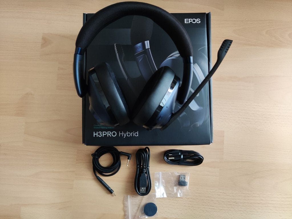 Zoals we gewend zijn van EPOS, is er aandacht voor een goede eerste indruk. Wanneer je de doos opent, zie je direct de prachtige headset centraal staan. Onderin heeft EPOS een kleiner doosje gestopt met alle toebehoren. Deze bevat een 3.5mm audiokabel (1.5 meter) gemaakt van zwarte decoratiestof, een USB-C-kabel (2 meter), een USB-A verlengkabel, een USB dongle, een microfoonklepje en de nodige handleidingen.