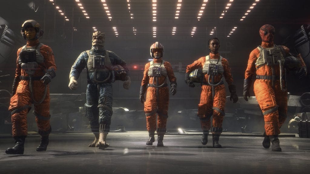 Je squadmates en leader voeren één op één dialogen met jouw personage. Het script is goed geschreven met veel pakkende oneliners. Aan het begin omdat je niet bekend bent met de personages, voelen veel dialogen saai aan. Maar gedurende het verhaal begin je steeds meer te geven om de leden van zowel Vanguard als Titan Squad. Iedere personage heeft een eigen persoonlijkheid en motivatie. Wij hebben genoten van het verhaal van Star Wars Squadrons. Het is wat ons betreft veel beter geslaagd dan het verhaal van Iden Versio in Star Wars: Battlefront II.