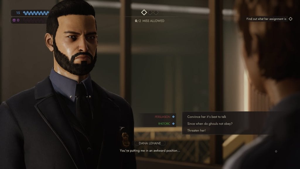 De conversaties die je voert worden door het niveau van je vaardigheden afgewogen tegenover die van je tegenstander. Als beide personages op een zelfde niveau zijn, dan bepaalt een dobbelsteen wie de confrontatie zal winnen. In een game waarin keuzes drastische gevolgen kunnen hebben, is het toch wel jammer dat er een RNG mechaniek aanwezig is.