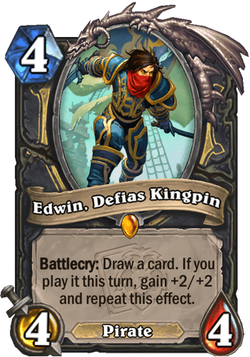 Edwin is één van de vier nieuwe legendarische kaarten van de mini-set. Edwin heeft een battlecry waarbij je een kaart mag trekken. Wanneer je de getrokken kaart speelt, krijgt Edwin +2/2. Vervolgens mag je weer een kaart trekken om Edwin nog sterker te maken.