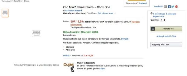 Op Amazon Italië is er voor korte tijd een nieuwe game opgedoken, namelijk Call of Duty: Modern Warfare 2 Remastered. Volgens Amazon verschijnt deze remaster al in april.