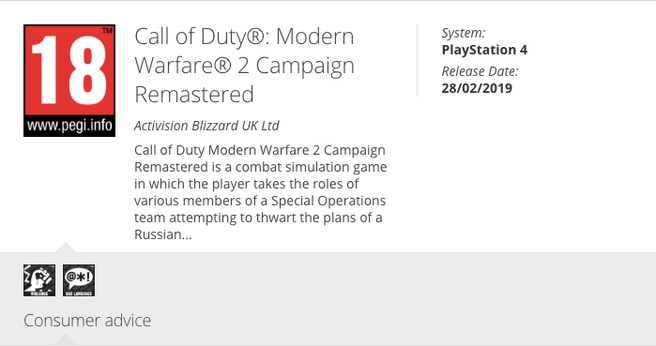De nieuwe Call of Duty van dit jaar wordt weer gedaan door ontwikkelaar Infinity Ward, de makers van de Modern Warfare-trilogie. Mogelijk krijgen we dit jaar Modern Warfare 2 naast de totaal nieuwe Call of Duty-game. Gamatsu heeft namelijk een rating gespot op de officiële website van PEGI. Aangezien de game nog niet officieel is aangekondigd is deze meteen van de website gehaald. Een screenshot van de PEGI-rating is hieronder te vinden.