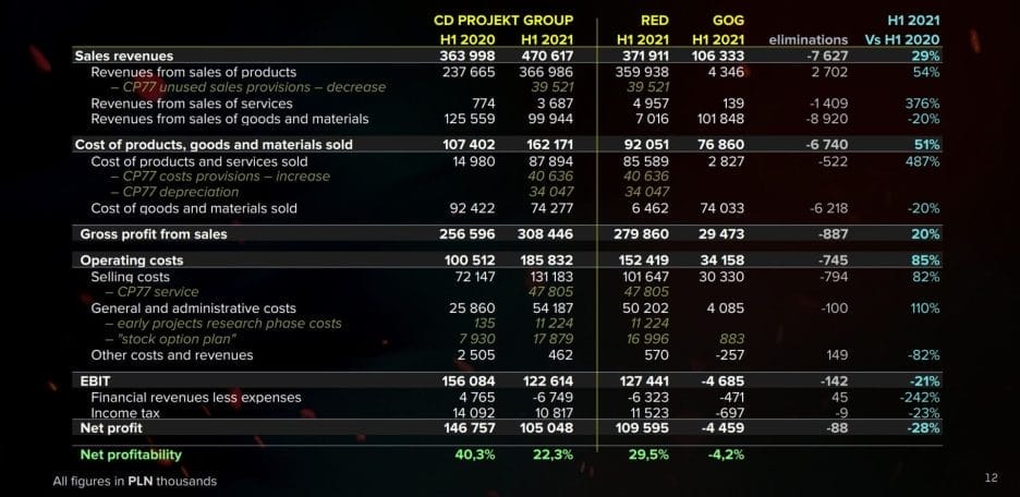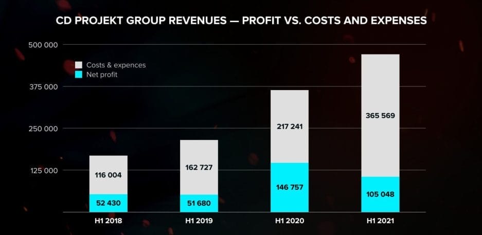 CD Projekt Red heeft financiële cijfers gedeeld voor de eerste helft van 2021. Tijdens een conference call is er meer informatie over het bedrijf gedeeld.