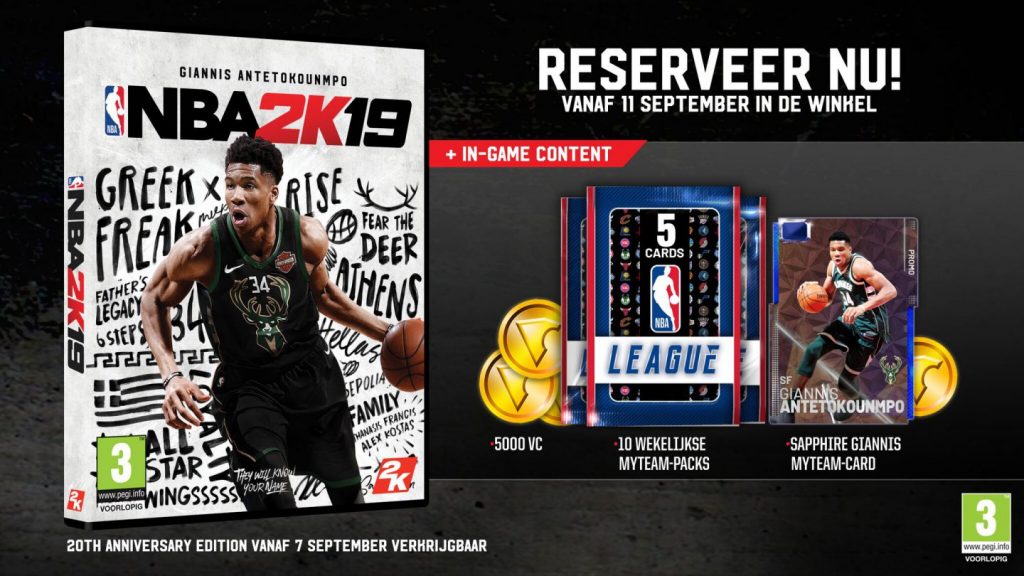 Zo heeft 2K bekendgemaakt dat Giannis Antetokounmpo met de nickname ”The Greek Freek” op de cover zal staan van NBA 2K19. Giannis Antetokounmpo speelt momenteel als Power Forward voor NBA team Milwaukee Bucks.