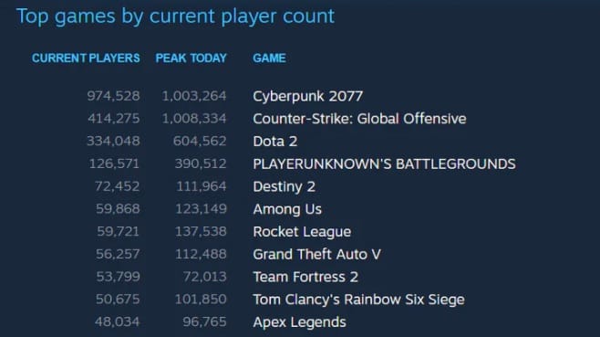 Ter vergelijking de piek van The Witcher III was 100.000 gelijktijdige spelers en de singleplayer-game die nog het meeste in de buurt kwam tot dit cijfer was Fallout 4, al ging dat om ‘maar’ 500.000 gamers.