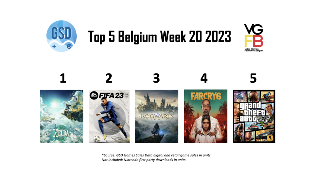 In week 20 van 2023 staat enkele nieuwkomers. Op nummer 1 staat nieuwkomer The Legend of Zelda: Tears of the Kingdom. Het vervolg op Breath of the Wild. Deze game heeft een uitstekende lancering achter de rug met 10 miljoen verkochte exemplaren in 3 dagen tijd.