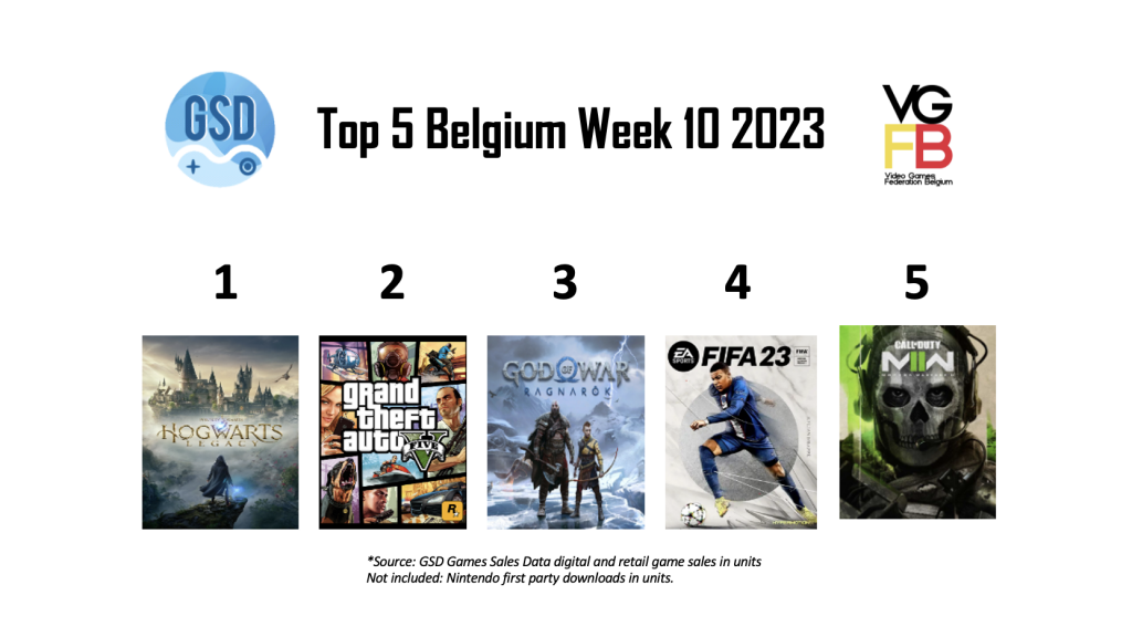In week 10 van 2023 staat nieuwkomer Hogwarts Legacy, de open wereld Harry Potter spin-off game op de eerste plek. Hogwarts Legacy doet het geweldig en de PS4 en Xbox One-versie van de game moet nog uitkomen.