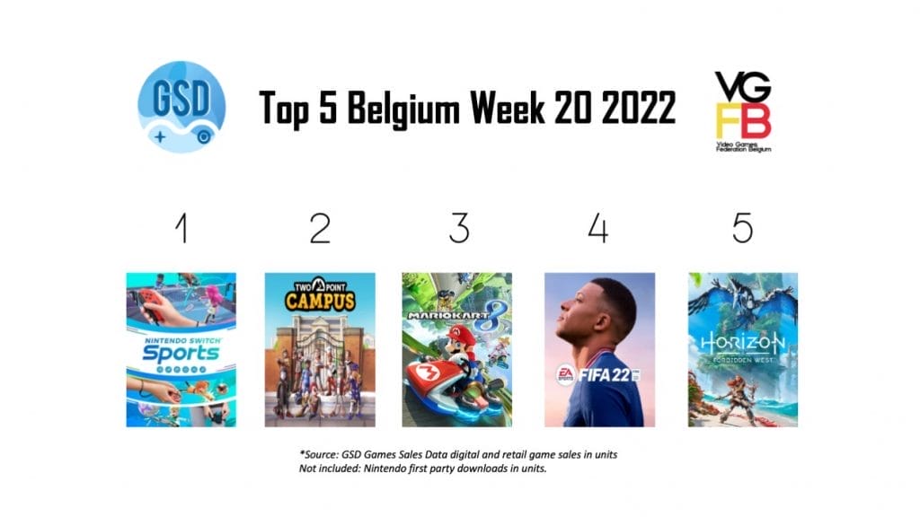 De top 5 van alleen België bevat dezelfde games, alleen zijn enkele posities anders. Horizon II: Forbidden West en Mario Kart 8: Deluxe zijn hier van plaats gewisseld vergeleken met de Benelux.