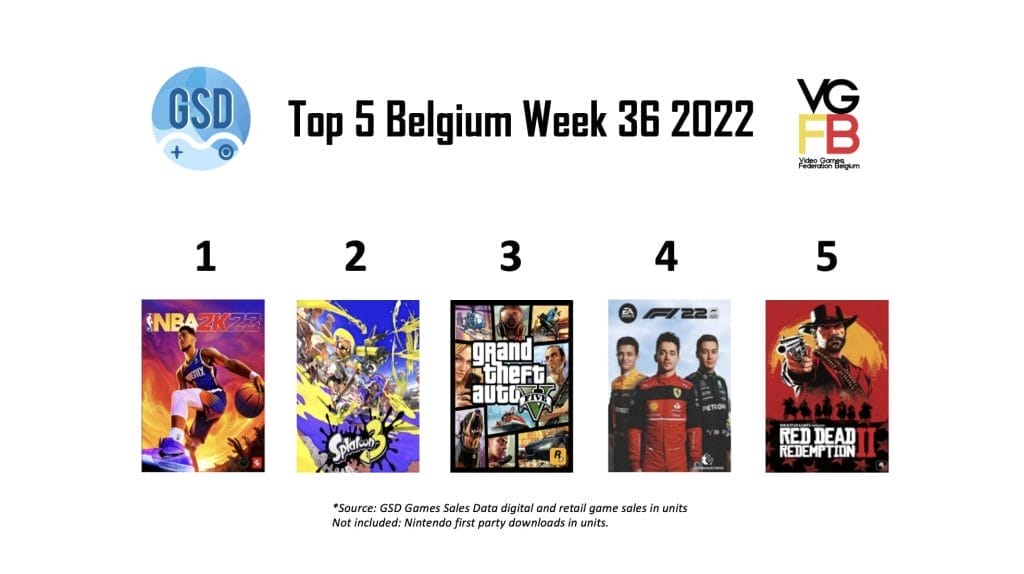 De top 5 van alleen België is ietsje anders. NBA 2K23 staat hier op nummer 1 terwijl Splatoon 3 hier genoegen moet nemen met de tweede plaats in de top 5.