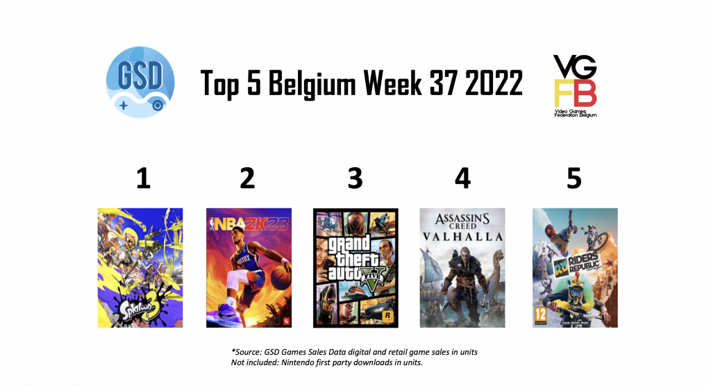 De top 5 van alleen België is ietsje anders. NBA 2K23 en GTA V zijn hier van plek gewisseld. Op nummer 4 van Belgie staat Assassin’s Creed Valhalla en als laatste staat Ubisoft’s extreme sports game Riders Republic op de 5e plek.