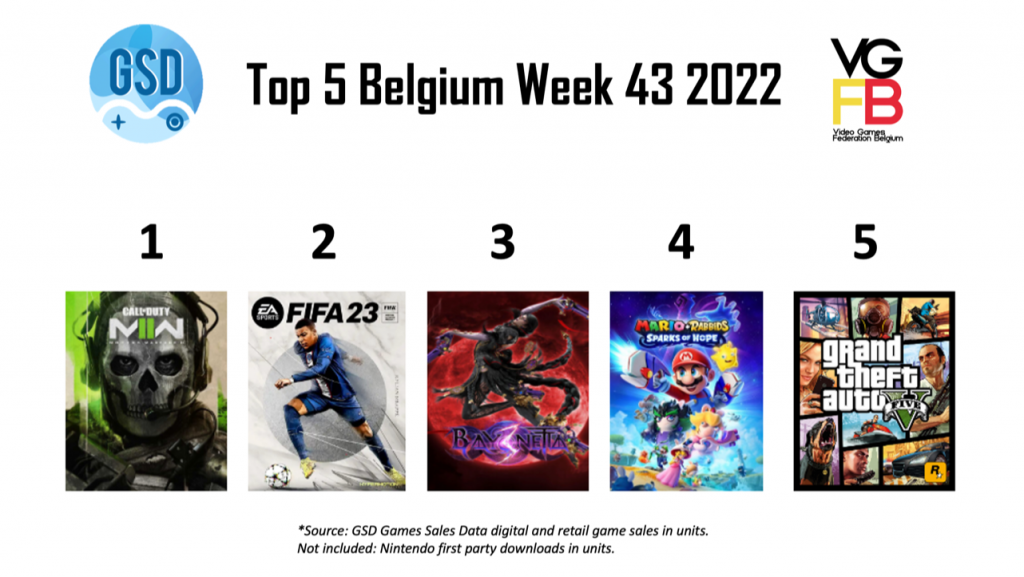 De Video Games Federation Belgium (VGFB) geeft ons iedere week een lijst met de top 5 meest verkopende games in de Benelux en een top 5 lijst voor België.