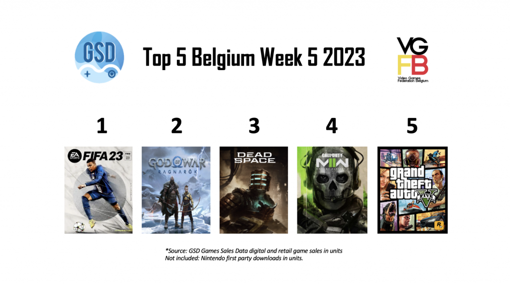 De Video Games Federation Belgium (VGFB) geeft ons iedere week een lijst met de top 5 meest verkopende games in de Benelux en een top 5 lijst voor België.