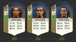 Dit zijn de drie Icon-cards van Ronaldinho: