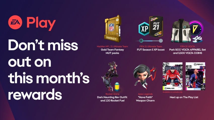Vanaf 12 april is NHL 21 beschikbaar op de Play List van EA Play. Vervolgens wordt in de maand mei FIFA 21 beschikbaar voor EA Play-leden.