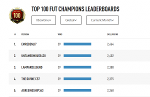 De e-Sporter van FC Twente won 39 van de 40 wedstrijden. Door dit goede resultaat voert hij op dit moment de maandelijkse leaderboard aan op de Xbox One, mede door zijn goede aantal Skill punten van 2.464.