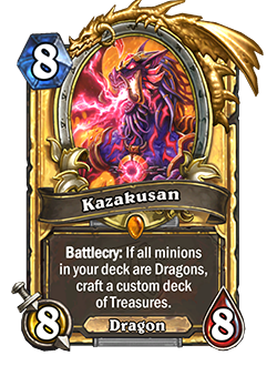 In de Standard-modus hebben de nieuwe kaarten uit Onyxia’s Lair wel gezorgd voor verschuivingen. Decks met de legendarische draak Kazakusan, zijn op dit moment heel populair, althans voor de mensen die Control decks spelen, bijvoorbeeld Priest en Druid. Draken zijn nu eenmaal heel sterk en kosten daarom ook veel mana. Daarom zijn draken vooral van toegevoegde waarde bij de classes die zoveel mogelijk een bord willen controleren, en het liefst het maximum van 10 mana willen bereiken tijdens een wedstrijd.