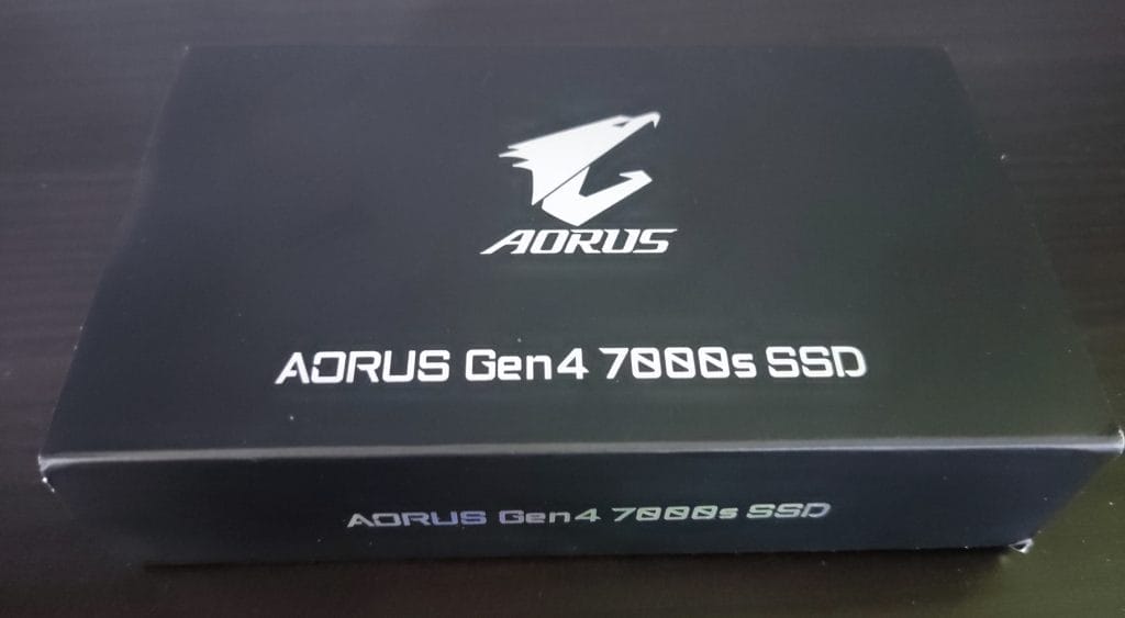 De Gigabyte AORUS Gen4 7000s is een PCI Express 4.0 M.2 SSD. Wij hebben de 1TB-versie gekregen. De SSD ziet er heel strak uit met zwarte aluminium en het AORUS-logo. Het is van het formaat 80mm, waardoor het precies past in de SSD slot van de PlayStation 5.