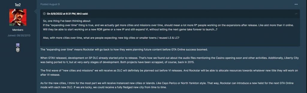 Bekende insider Tez2 die vaak met correcte informatie komt over GTA V en Red Dead Redemption 2, zegt dat Rockstar van plan is om GTA 6 te voorzien van nieuwe steden en missies na launch. Spelers kunnen een nieuwe stad of een eiland verwachten met nieuwe content voor online als offline. De uitbreidingen zijn volgens Tez2 al gepland voordat GTA 6 uitkomt.