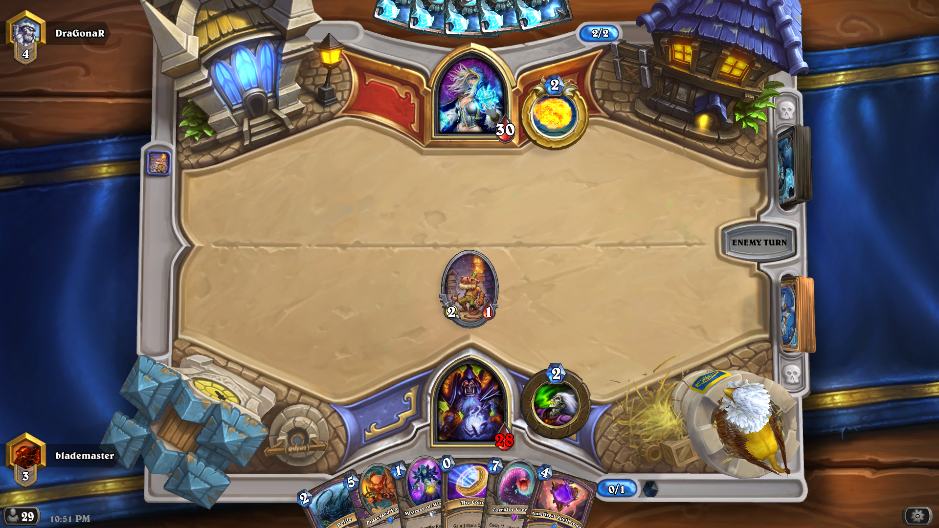 Als je dus de wapen die je erg graag wilt niet krijgt, zal je het moeten craften. Hiervoor zal je 1600 dust nodig hebben. De decks die in de hoge ranks worden gebruikt gebruiken heel wat legendary en epic kaarten dus je zult al een flinke collectie moeten hebben om die decks te maken. Of je kan natuurlijk pakjes kopen met echt geld of in-game gold totdat je genoeg kaarten hebt. Hoewel we vaker evenementen en gratis dingen krijgen van Blizzard, is de free-to-play ervaring nog altijd moeizaam.