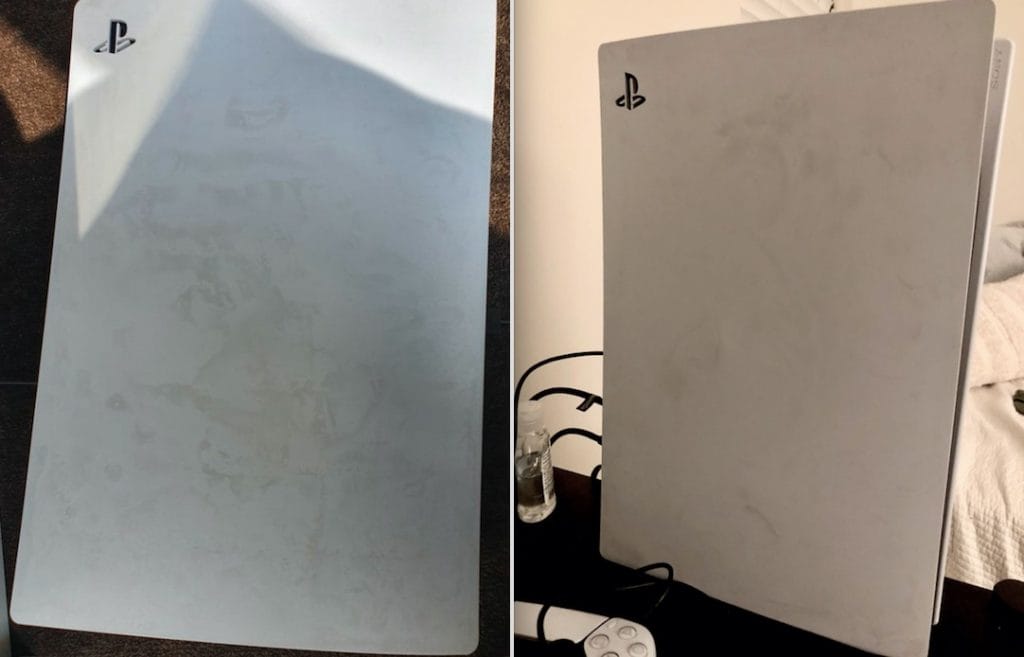 Voor alle duidelijkheid, het is niet omdat iemand met zijn heel vuile handen de console heeft beginnen te betasten. Er wordt gespeculeerd dat het heel misschien om een verkleuring zou kunnen gaan van het plastiek door de warmte van de console zelf of van de omgeving. Ook een kaars die in de buurt staat, zou dit effect kunnen veroorzaken.