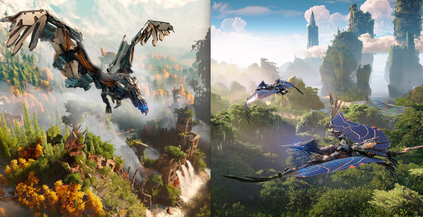 De beste en meest duidelijke manier om te vergelijken zijn direct-feed screenshots tegenover elkaar leggen. In onderstaande afbeeldingen zie je enkele screenshots van de PlayStation 5 exclusive Horizon II in vergelijking met de PS4-game Horizon Zero Dawn.