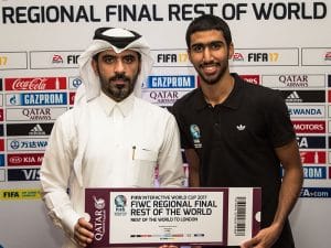 In het algemeen zijn de deelnemers aan dit toernooi doorgewinterde gamers die vroeger droomde van een carriere als profvoetballer. Echter, in sommige gevallen komt het voor dat deze droom toch gerealiseerd wordt. Zo gebeurde het afgelopen weekend in Doha, de hoofdstad van Qatar, dat Ahmed ‘AaMeghessib’ al Meghessib zich kwalificeerde voor het FIWC XBOXone toernooi in Londen. Al Meghessib is een professionele voetballer die is opgenomen in de nationale selectie van Qatar.