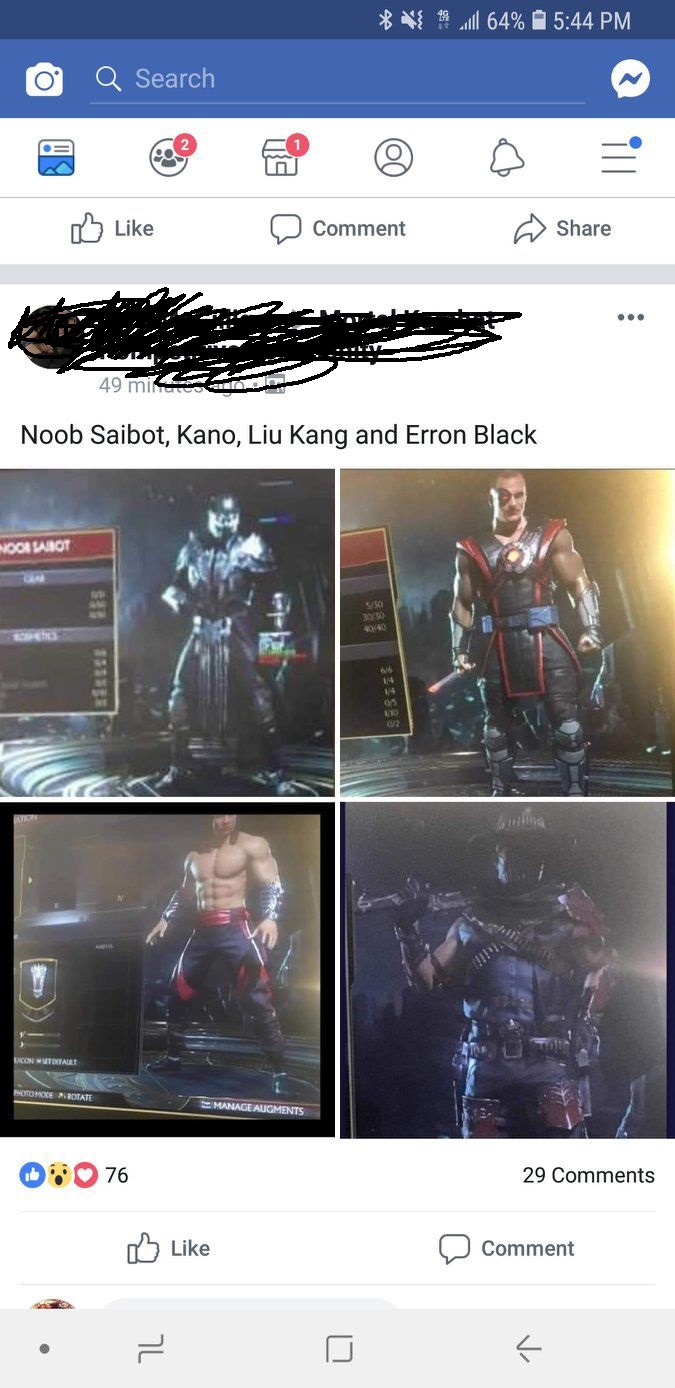 Maar dat is nog niet alles want later in de nacht kwamen er zelfs screenshots online van de nog aangekondigde vechters. Zo zien we hieronder Noob Saibot, Kano, Lui Kang, Erron Black en Kotal Kahn.