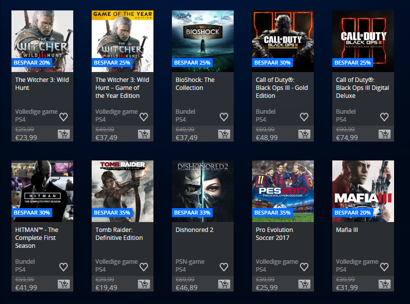 Het is woensdag en dat betekent veelal nieuwe aanbiedingen in de PlayStation Store wanneer de voorgaande zijn afgelopen. Dit is deze week weer het geval en ditmaal extra mooie aanbiedingen voor PlayStation Plus leden. Zij krijgen namelijk dubbele kortingen op enkele topgames, waaronder The Witcher 3 Wild Hunt en Dishonored 2. Alle aanbiedingen staan hieronder, waarbij je rekening moet houden dat dit de aanbiedingsprijzen voor niet PlayStation Plus leden zijn. De korting wordt voor PlayStation Plus leden dus nog verdubbeld.