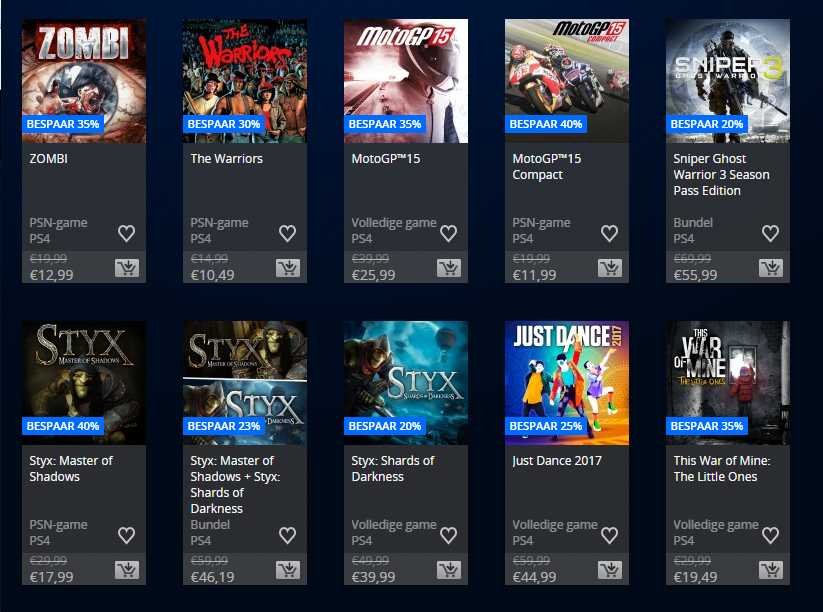 Het is woensdag en dat betekent veelal nieuwe aanbiedingen in de PlayStation Store wanneer de voorgaande zijn afgelopen. Dit is deze week weer het geval en ditmaal extra mooie aanbiedingen voor PlayStation Plus leden. Zij krijgen namelijk dubbele kortingen op enkele topgames, waaronder The Witcher 3 Wild Hunt en Dishonored 2. Alle aanbiedingen staan hieronder, waarbij je rekening moet houden dat dit de aanbiedingsprijzen voor niet PlayStation Plus leden zijn. De korting wordt voor PlayStation Plus leden dus nog verdubbeld.