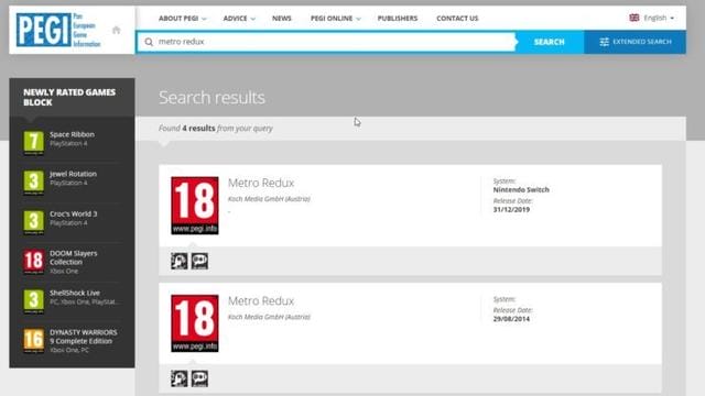 PEGI, de organisatie die games in Europa voorziet van etiketten, heeft op de officiële website melding gemaakt van een Nintendo Switch-versie van Metro Redux. Deze game is helemaal niet aangekondigd door ontwikkelaar 4A Games, uitgever Deep Silver of Nintendo. Wel wordt de game nu door PEGI genoemd en waarschijnlijk zal de officiële aankondiging snel volgen. Misschien al tijdens de grote januari Direct-uitzending van Nintendo.