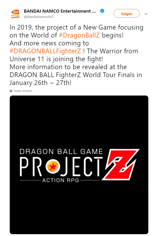 In een tweet kondigde Bandai Namco een nieuwe game genaamd Dragon Ball Project Z aan, een RPG die dit jaar nog moet verschijnen. Die aankondiging is daarna opeens verwijderd want de aankondiging had mogelijk pas tijdens de Dragon Ball FighterZ World Tour-toernooi gemoeten. Deze wordt volgende week zaterdag en zondag gehouden (26 en 27 januari 2019). Als laatste weten we dat het zal gaan om een vechter uit Universe 11, en dat is natuurlijk waar de super sterke Jiren leeft.