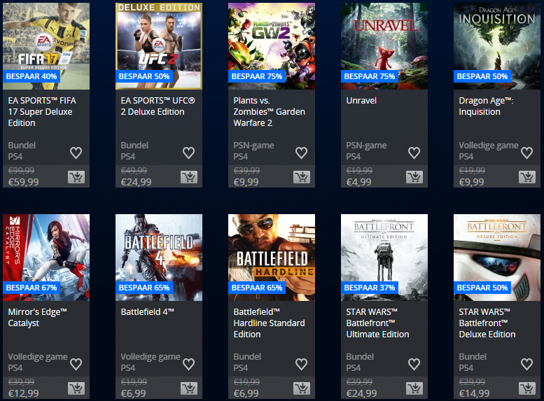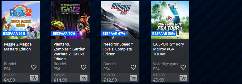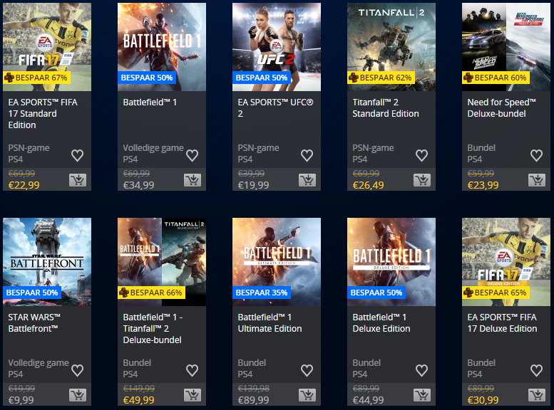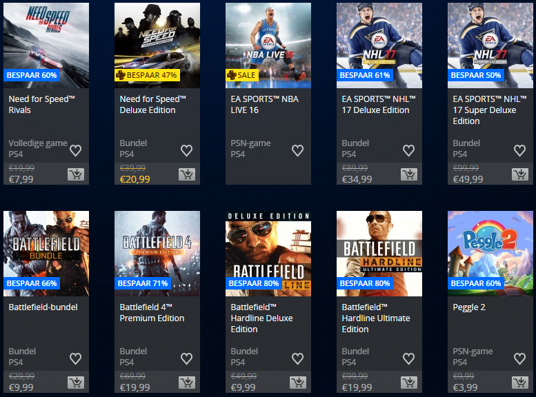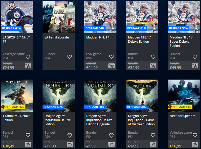 Naast deze PlayStation 4 games, zijn er ook nog EA PS4 DLC, PS3 games en DLC in de aanbieding. Deze aanbieding kan je vinden via de onderstaande link. Bovendien zijn er nieuwe digitale aanbiedingen, is Grand Theft Auto V in de aanbieding en is The Crew de nieuwe deal van de week. Naar al deze aanbiedingen staan hieronder links.