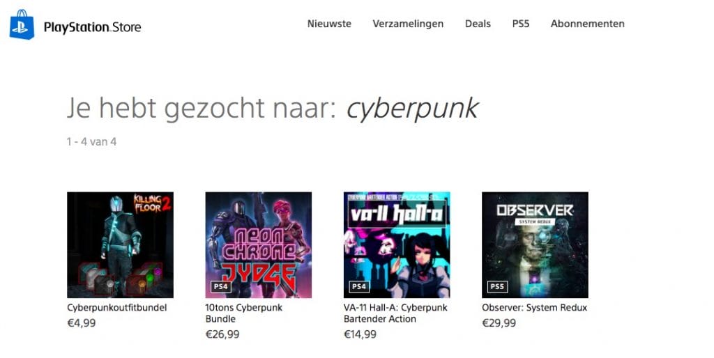 Je kan ondanks de verwijdering uit de Store Cyberpunk 2077 dus nog altijd wel in de winkel kopen en dus op je PS4 of PS5 spelen. Indien je echter de PS5 Digital Edition bezit, heb je pech en zal je geduld moeten uitoefenen tot Sony Cyberpunk opnieuw in de PlayStation Store zet.