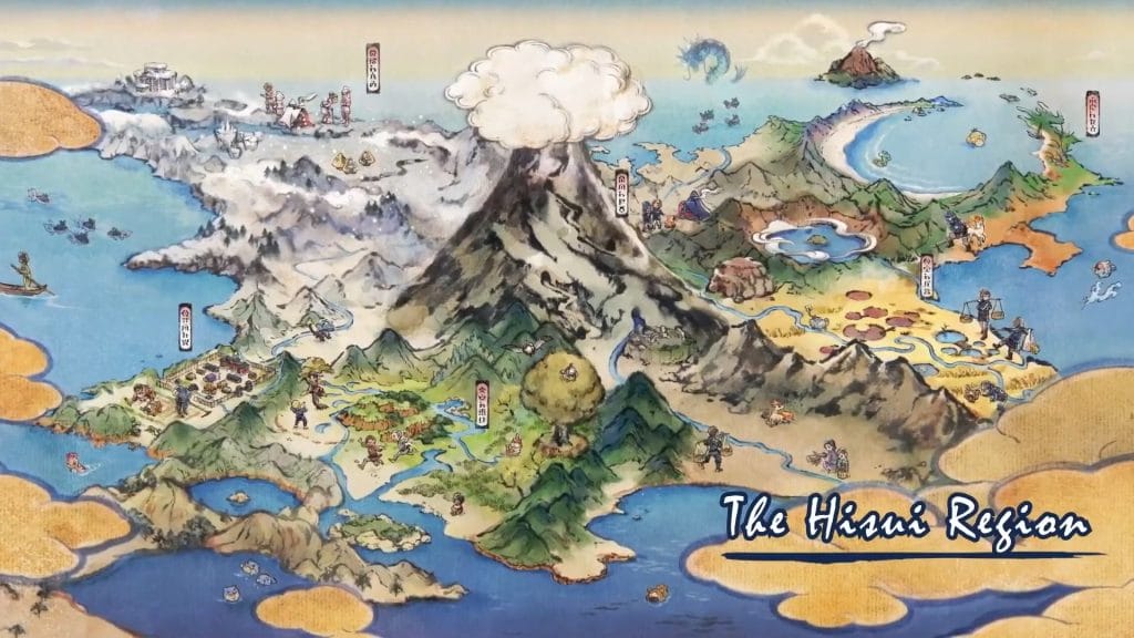 Deze game speelt zich af in het verre verleden in het land Hisui, een gebied wat later de Sinnoh-regio wordt. Hisui bevat meerdere soorten landschappen waar velen soorten Pokémon te vinden zijn. Er zijn zelfs speciale Hisui-versies van bekende Pokémon waaronder Hisuian Braviary en Hisuian Growlithe. De starter Pokémon van van deze game zijn Rowlet, Cybdaquill en Oshawott.