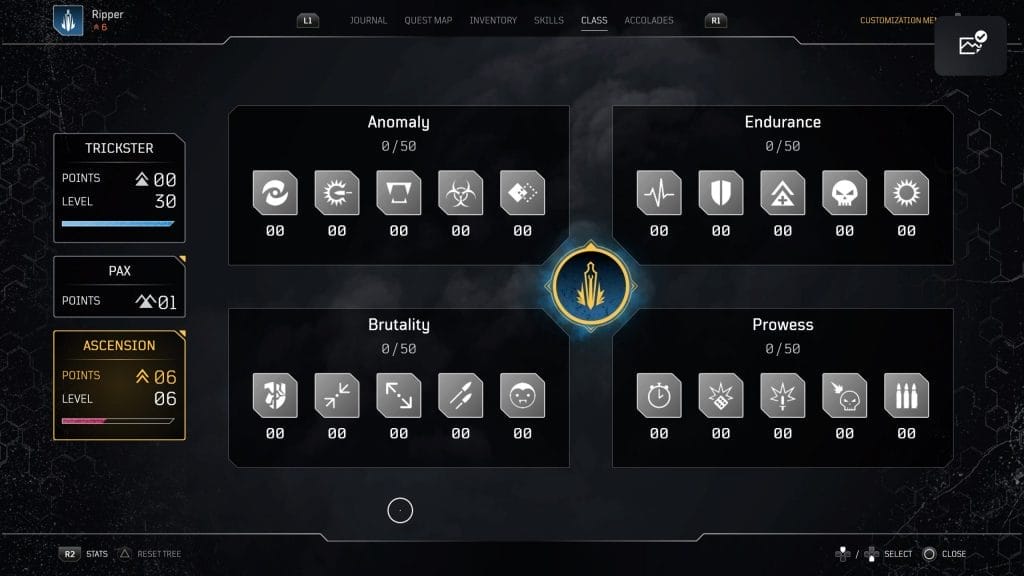 Outriders Worldslayer brengt twee nieuwe manieren om je character sterker te maken. De eerste is het PAX-puntensysteem. Dit systeem is een uitbreiding van het oude puntensysteem. Het is echter niet een grote skill three. Spelers kunnen in totaal maar vijf punten besteden. De skill three bestaat uit twee paden. De eerste is voor gunplay en de tweede voor anomaly-krachten. Eén van de boosts die de spelers kunnen ontgrendelen is de kans om tijdelijk 15 procent meer schade te doen wat kan oplopen tot 750%. Bovendien is het mogelijk om dit tot maximaal drie keer te upgraden.