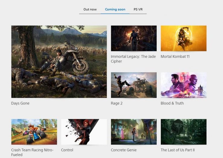 Op een nieuwe ‘coming soon’ pagina, zijn games te zien die allemaal in de komende maanden gaan verschijnen zoals Days Gone, Mortal Kombat 11, RAGE 2 en Crash Tag Team Racing: Nitro Fueled. De grootste verrassing is echter dat The Last of Us: Part II ook in het rijtje staat. Andere grote first party games staan er niet zoals Death Stranding en Ghost of Tsushima. Fans zijn nu op Reddit aan het speculeren dat The Last of Us: Part II mogelijk al dit jaar kan verschijnen.