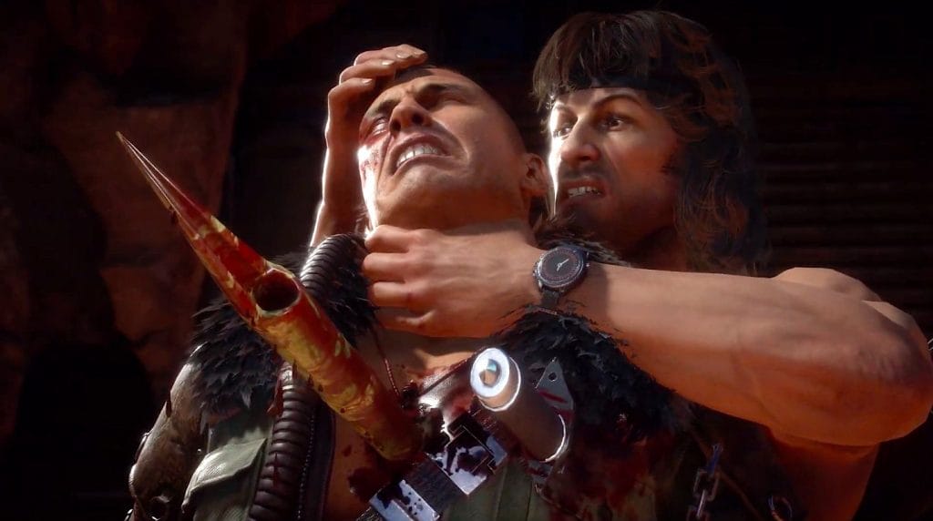 In de nieuwe Rambo-trailer hieronder van Mortal Kombat zien we dit gevecht een beetje plaatsvinden. De focus ligt hier echter bij de moveset van Rambo die behoorlijk gevarieerd is. Rambo gebruikt zowel short als longe range wapens, om zijn vijanden een kopje kleiner te maken.