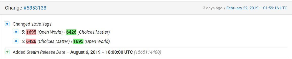 De Steam-database heeft mogelijk weer eens belangrijke informatie gelekt. Op Steam was even te lezen dat de game op 6 augustus 2019 zou verschijnen. Dat is een dinsdag en dus kan het kloppen, want games komen uit op een dinsdag of vrijdag. Steam heeft de releasedatum meteen weggehaald maar hieronder is nog altijd een screenshot te vinden.