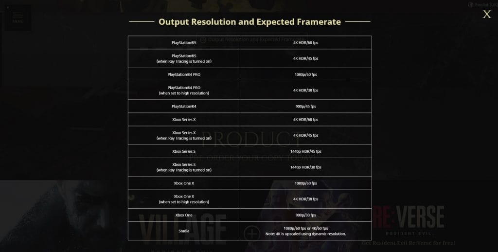 Capcom deelt steeds meer informatie over de aankomende Resident Evil Village. Nu is bekendgemaakt op welke resolutie en framerate de game zal draaien op de verschillende consoles.