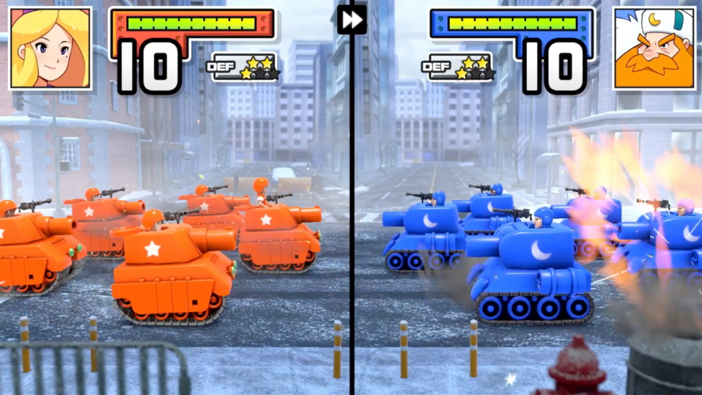 Verder heeft Advance Wars 1+2: Re-Boot Camp ook multiplayer, maar helaas is er geen online matchmaking. Wil je online spelen tegen een andere speler, dan moet je deze persoon persoonlijk uitnodigen via je vriendenlijst. Wel kan je lokaal multiplayer spelen door gewoon met twee Joy-Con-controllers te spelen op één Nintendo Switch. Aangezien het draait om tactiek en turns, werkt dit als een trein op één systeem. Als er twee Nintendo Switch-eigenaren zijn die beide beschikken over Advance Wars 1+2: Re-Boot Camp, dan kan je ook multiplayer tegen elkaar spelen door twee systemen met elkaar te verbinden.