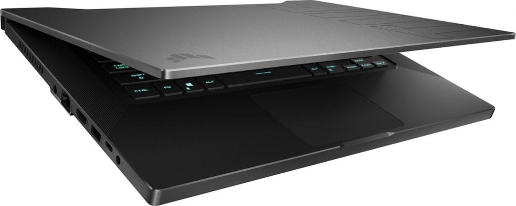 De TUF Dash F15 is een opvallend dunne laptop met een dikte van maar 2cm. Wanneer je deze laptop voor het eerst ziet, zou je niet denken dat er hier een Nvidia RTX 3070 is inbegrepen. Dat is wel het geval, al is de TGP hier 85W. Dat is wel een stuk lager dan wat je kan verwachten bij de ROG-laptops van ASUS.