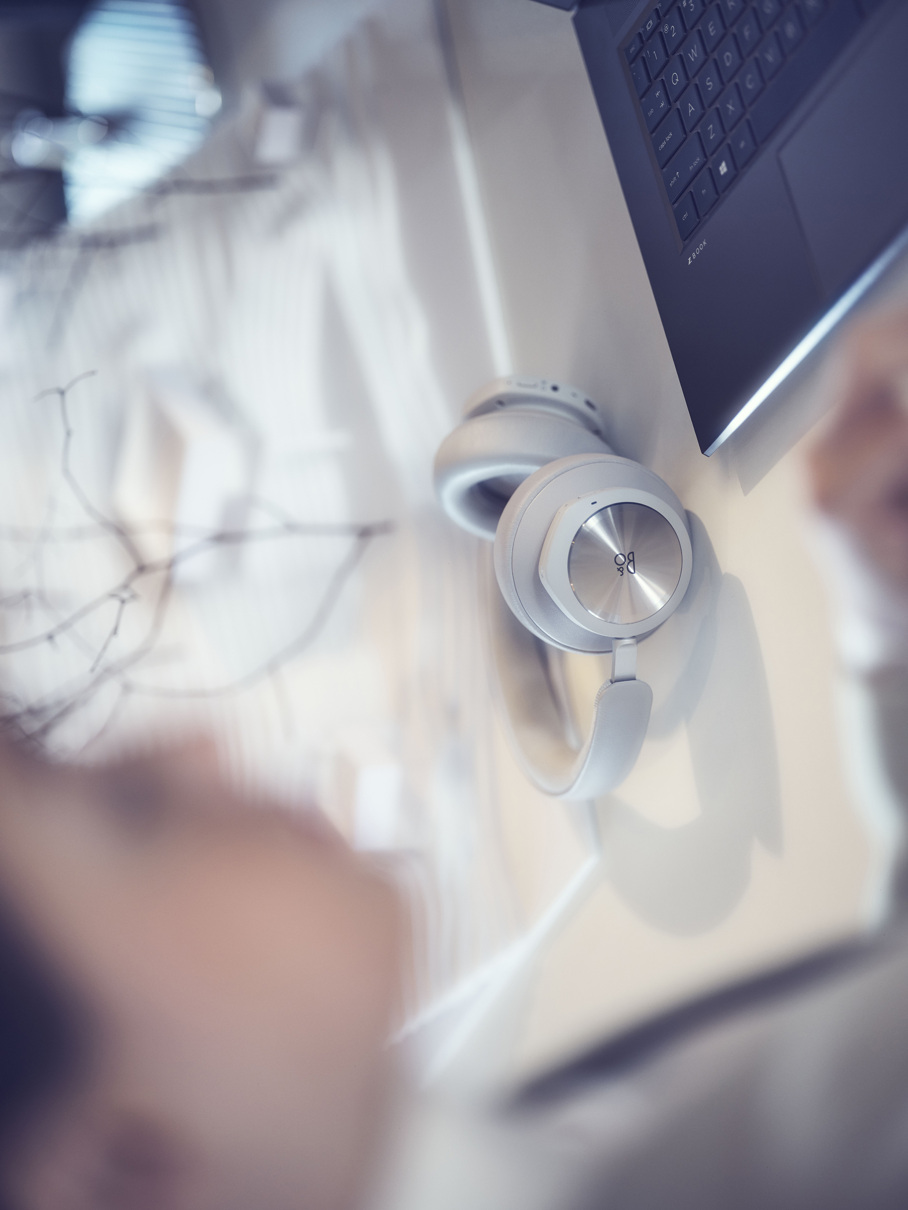 Het ontwerp is zeer gedetailleerd waarbij er veel aandacht is voor details. De aluminiumschijven op de oorschelpen hebben touch-ondersteuning. Hiermee kan je bijvoorbeeld pauzeren, afspelen en skippen. De oorkussens zijn gemaakt van traagschuim en omwikkeld door lamsleer, wat heel goed en zeer premium aanvoelt. De oorkussens hebben een over-ear design wat goed is voor een gesloten audio-ervaring en betere comfort omdat er geen directe druk is op je oren. Toch hadden wij wel last van vermoeide oren bij lange gamesessies. Mogelijk heeft dit te maken doordat de oorschelpen niet heel groot zijn, waardoor het bij ons na enkele uren zorgde voor rode oren. De hoofdband aan de bovenkant van de koptelefoon heeft totaal geen druk en is van heel zachte materiaal. Dat komt omdat B&O heeft gekozen voor een vulling van bamboevezeltextiel.