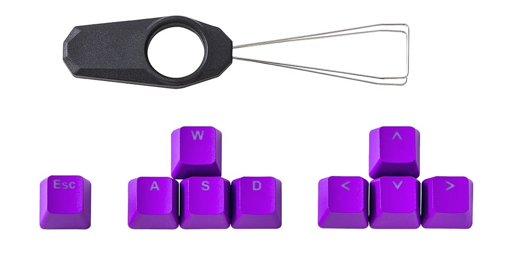 Het oogt met paarse knoppen best cool maar het minimalistische zwarte weergave is dan wel compleet weg. Wel zijn al deze extra knoppen volledig paars van kleur, en daar kan je wel of geen fan van zijn. Voordeel van individuele Cherry-knoppen is dat je individuele caps van buiten kan kopen en installeren op dit toetsenbord.