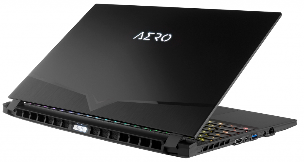 De AERO 15 heeft een strak design in de vorm van een aluminium behuizing die niet overdreven ‘gaming’ oogt. Deze laptop kan je gerust meenemen naar werk of school, want dit is een pure matzwarte laptop. Alleen als je de RGB van de toetsen inschakelt, dan heeft het een gamer-uitstraling. De laptop oogt heel premium en zo voelt het materiaal ook aan. De onderkant van deze laptop is bijna een kunstwerk van Gigabyte te noemen, waarbij er allemaal micro ventilatieopeningen in de vorm van kleine rijen is gemaakt.