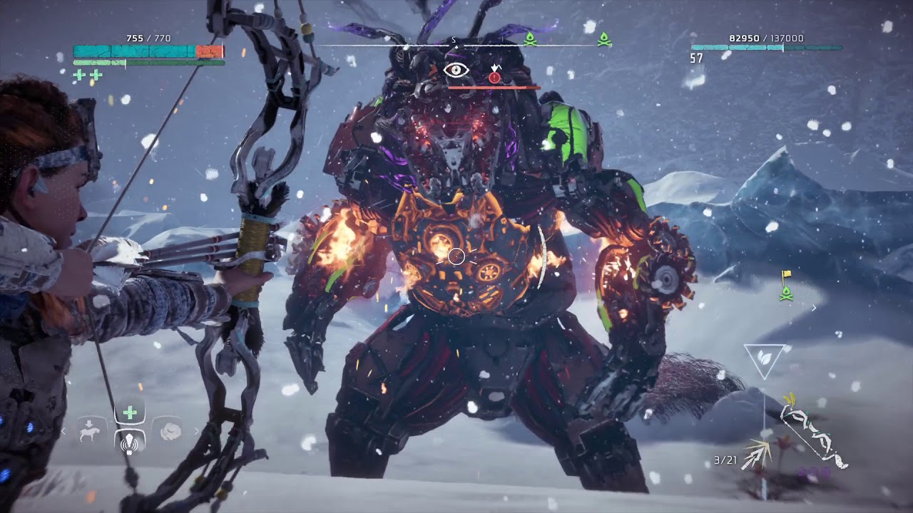 Het wilde leven in The Frozen Wilds is gelukkig ook uitgebreid. In de base game was het bizar dat er zo weinig variatie was. Alleen enkele wilde dieren waren te vinden waaronder konijnen, ratten, kalkoenen en varkens. In The Cut kom je nog geiten, schapen, ganzen en uilen tegen. Via een optionele quest kom je te weten waarom er zo weinig levende dieren zijn in de wereld van Horizon. Dit was iets wat in de main game niet goed werd uitgelegd maar in de uitbreiding heeft Guerrilla gelukkig deze vraag op een leuke manier beantwoord.