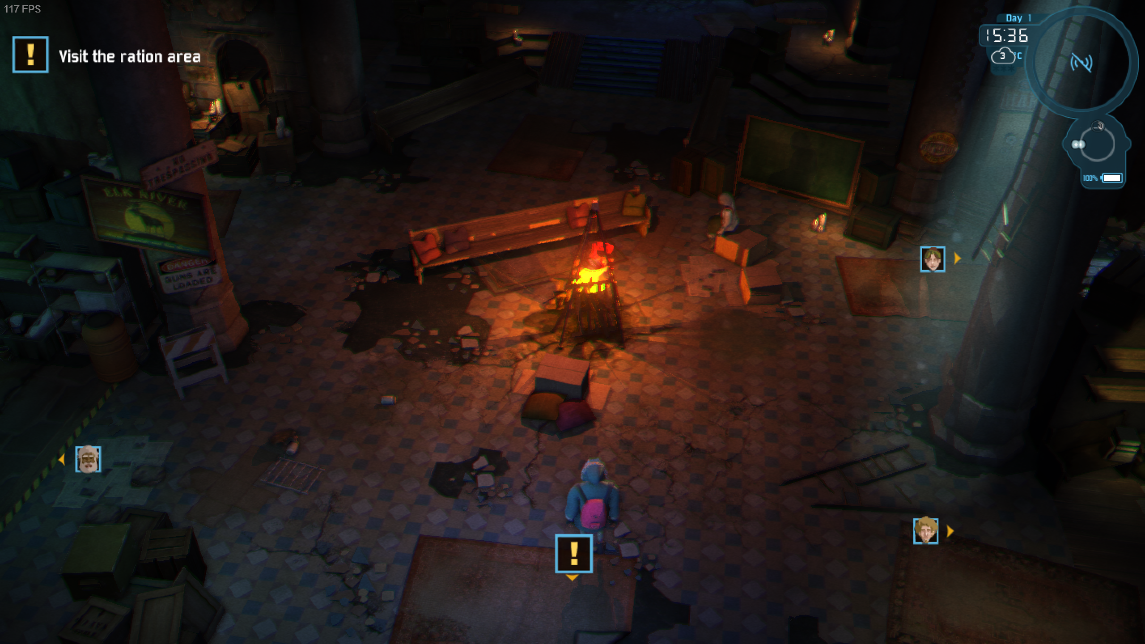De timer geeft je het gevoel dat je beslissingen doorwegen en je tijd kostbaar is. Elk teamlid heeft nood aan energie, warmte, eten, drinken en motivatie. Deze moet je in’t oog houden via je in-game menu dat je overal kan bezien. Zij hebben elks hun boterhammendoos (een grote kist) waar je eten en drinken kan inzetten dat ze zullen consumeren als ze laag komen te staan hierin. Energie krijgen ze door voedsel en door te slapen. Koude is erg dodelijk aangezien heel de wereld ondergesneeuwd lijkt onder 20m sneeuw. Hou dat vuur in je kerk dus zeker aan met hout en andere brandbare zaken die je kan vinden. Hierop kan je ook je eten klaarmaken wat het verbetert.