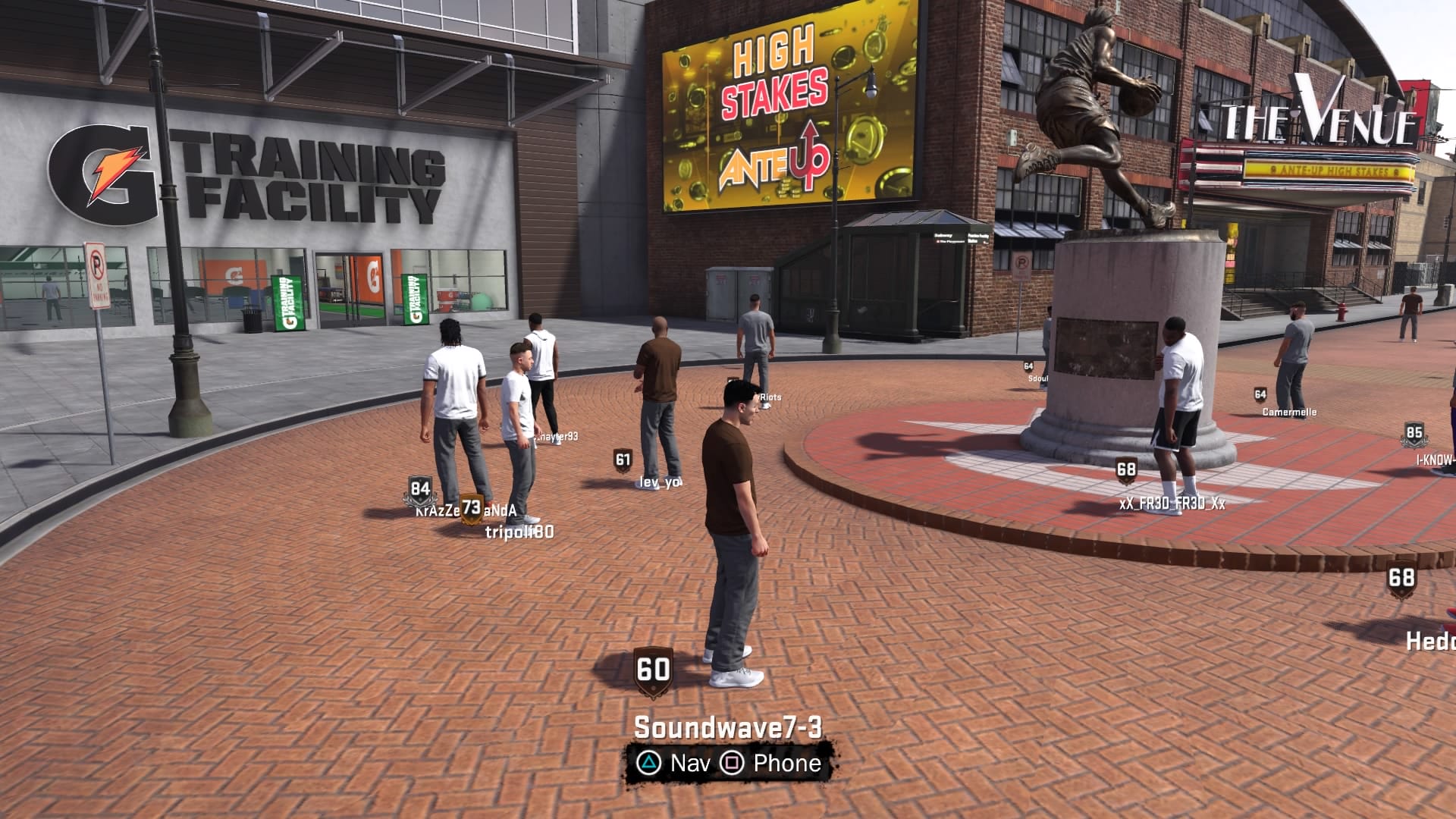 Nadat je een wedstrijd hebt gespeeld beland je in The Neighborhood, dit is een vrij groot gebied die je kan verkennen met je eigen karakter. Hier zie je onder andere veel winkels waar je nieuwe kleding en natuurlijk sneakers kan kopen. Daarnaast is er een fitnesscentrum en een zaal van je club. Het leuke aan The Neigborhood is de integratie van andere kleinere modi van NBA namelijk MyPark en Pro-AM, nu hoef je niet meer extra laadschermen te zien via het hoofdscherm maar loop je gewoon naar een veldje in The Neighborhood.