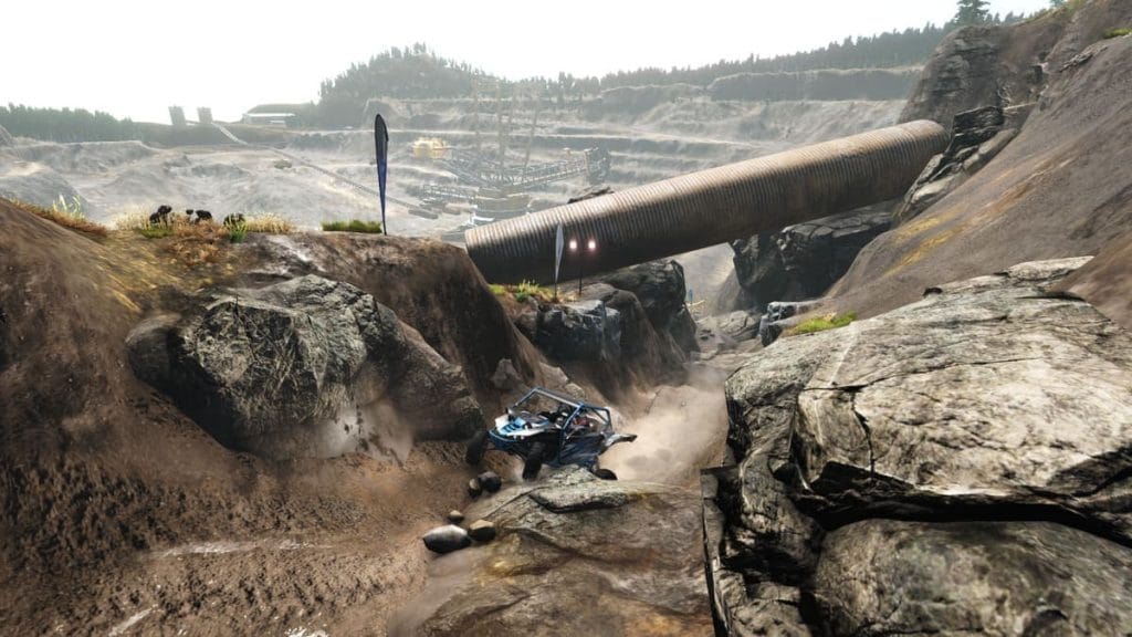 Gelukkig krijg je een uitgebreide uitleg wanneer je voor het eerst je carrière opstart. Dat is ook wel nodig om een beetje te snappen hoe je sommige objecten het beste kan benaderen. Het gaat om de juiste snelheid en de juiste hoek van je wielen om toch verder te komen. Proberen door de omheining te rijden of af te snijden wordt bestraft met een flinke penalty. Kom je vast te zitten of kantelt je voertuig kan je gelukkig wel resetten, maar let op dat kost ook weer tijd!
