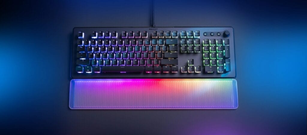 Gamers houden van een beetje RGB en Roccat zet daar veel op in. De Roccat Vulcan II Max is een absolute lichtshow. Wij hebben veel gaming toetsenborden gerecenseerd, maar geen één komt in de buurt van de Vulcan II Max als het gaat om RGB.