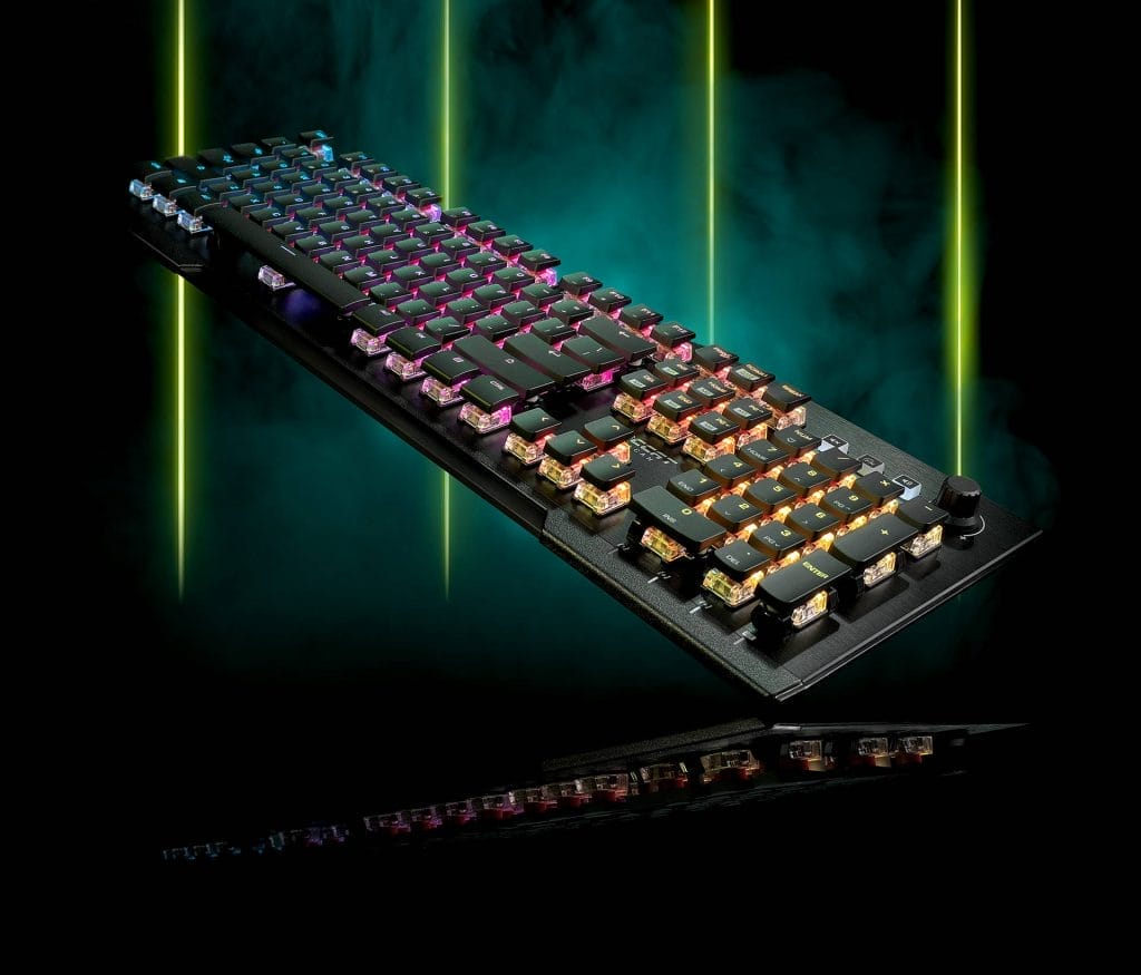 De Roccat Vulcan Pro beschikt over Titan Optical Switches. De schakelaars gaan 100 miljoen kliks mee, wat bijzonder goed is. Toetsenborden van concurrenten beloven vaak een levensduur van 50 miljoen kliks per key. De Titan schakelaars hebben een activeringspunt van 1,4 mm, waarmee het sneller is dan traditionele mechanische schakelaars. De schakelaars geven je het gevoel van een mechanisch toetsenbord, maar de performance is veel beter. De toetsen werken namelijk met lichtsensoren. Wanneer het licht wordt geblokkeerd doordat de gebruiker op een toets drukt, wordt een key geregistreerd. Dit systeem waarbij gebruik wordt gemaakt van de snelheid van licht, geeft je daadwerkelijk sneller output, en dat is wat gamers vooral zullen waarderen. Alle toetsen op dit toetsenbord hebben als het ware een ‘hair trigger’ effect.